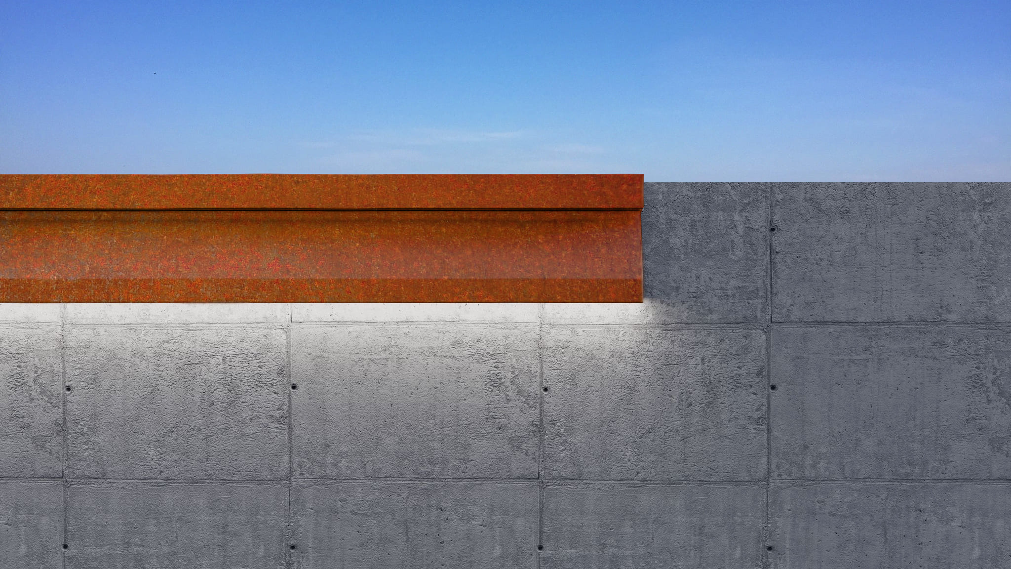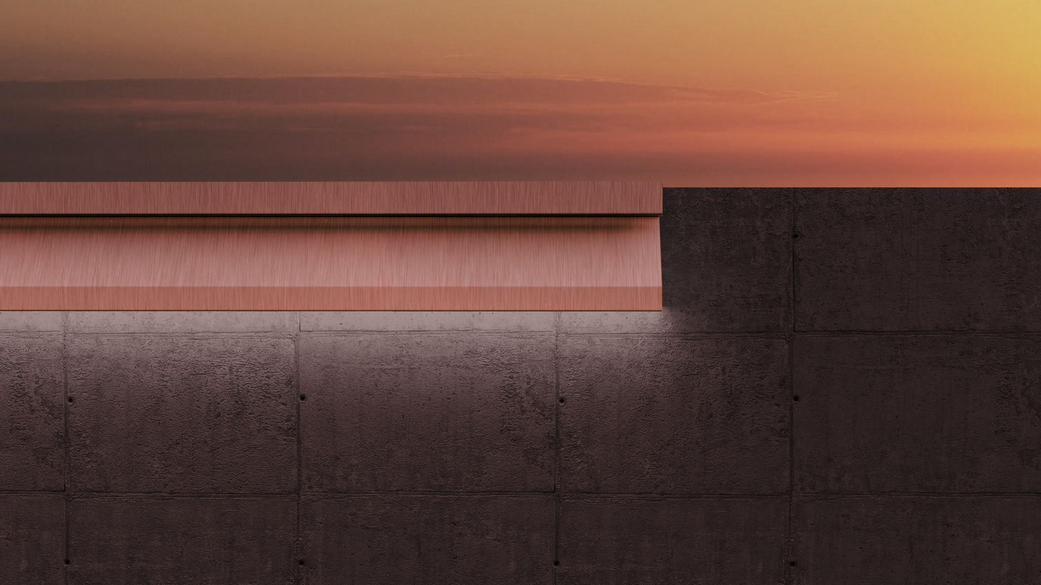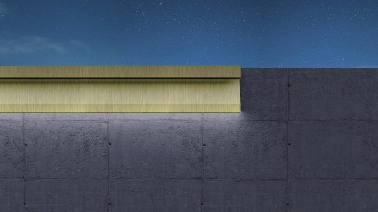 A barrier fully made of highly polished stainless steel with sufficient thickness. It protects the horizontal area of the wall against weathering while looking elegant with minimal effort.